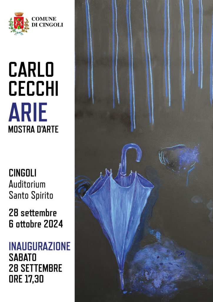 A Cingoli dal 28 settembre al 6 ottobre, nello scenografico spazio monumentale di S.Spirito, si terrà la mostra, voluta e organizzata dal Comune di Cingoli, CARLO CECCHI: “ARIE”.